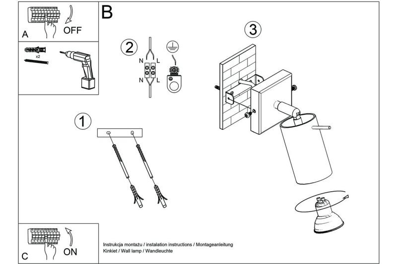Poniżej znajdują się podstawowe zasady dotyczące bezpieczeństwa przy montażu kinkietu: